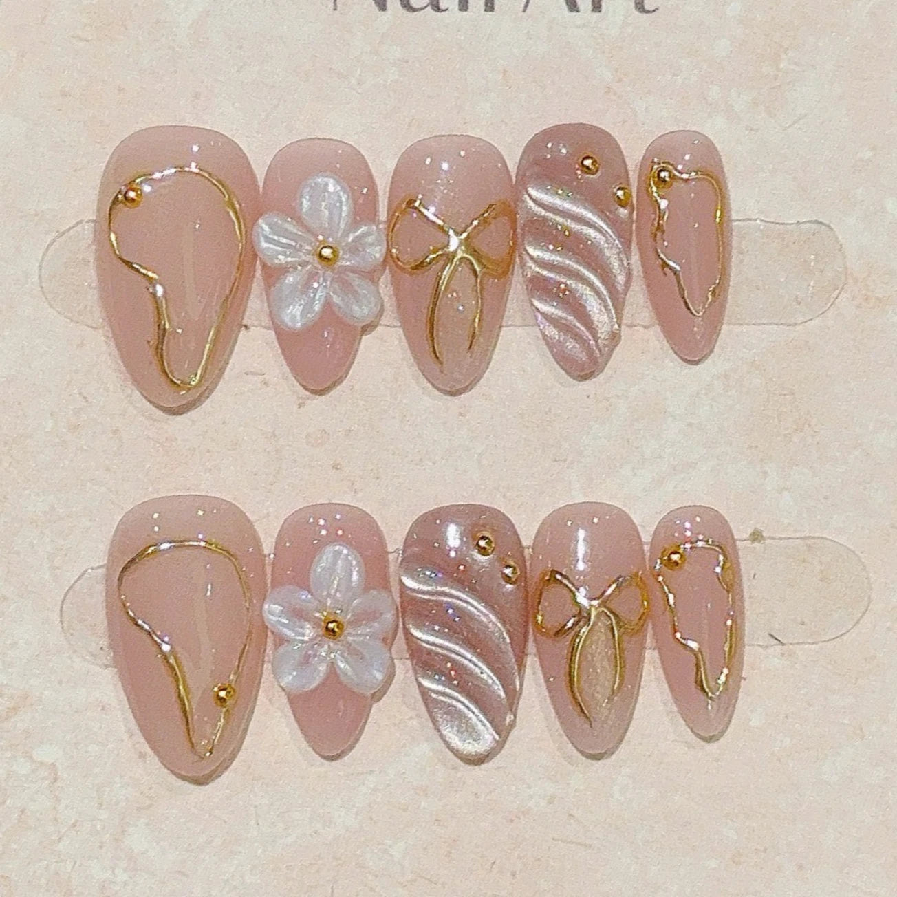 10Pcs Cat Eye Almond Handmade Press on Nails 3D Flower Fake Nails Wearable Stick-on Nails False Nail 네일팁 Накладные Ногти Uñas