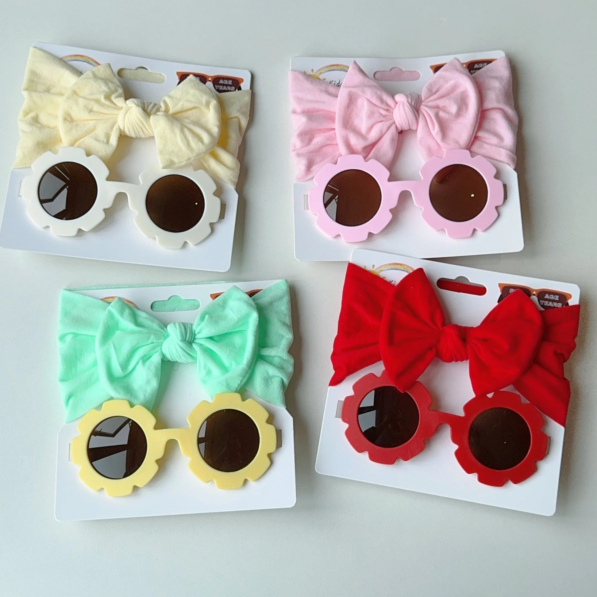 2 Pcs/Set New Children Cute Solid Bowknot Wide Hairbands Heart Sunglasses Hair Bands Baby Kids Headwear Girls Hair Accessories