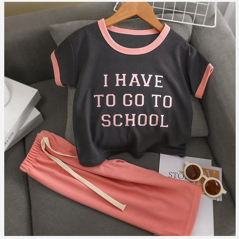 2025 Summer Children Clothes Sets Sports School Outfits for Baby Girl Boy Suit T-shirts+Pants 2 Piece Kids 1-8Yrs Clothing