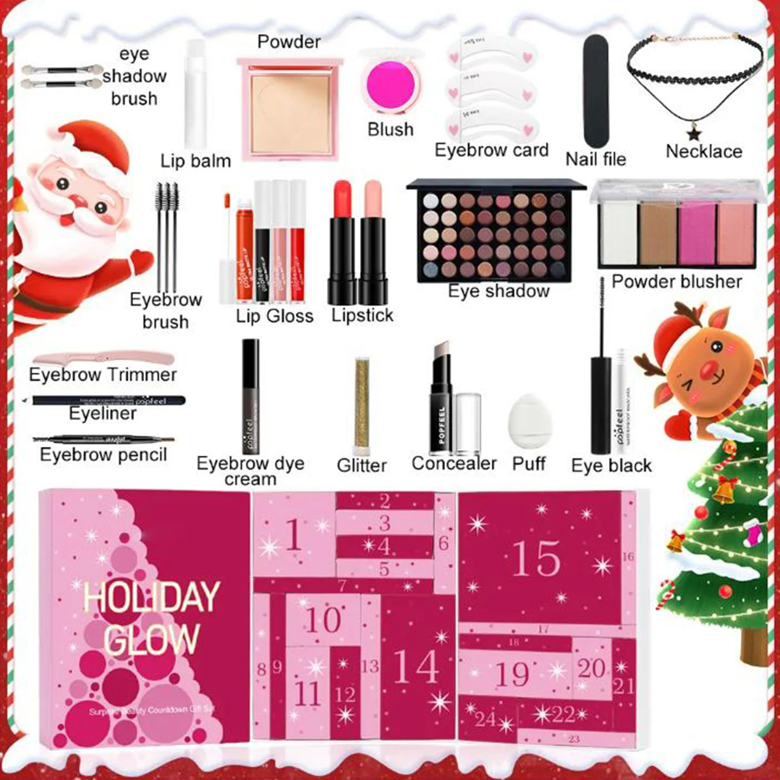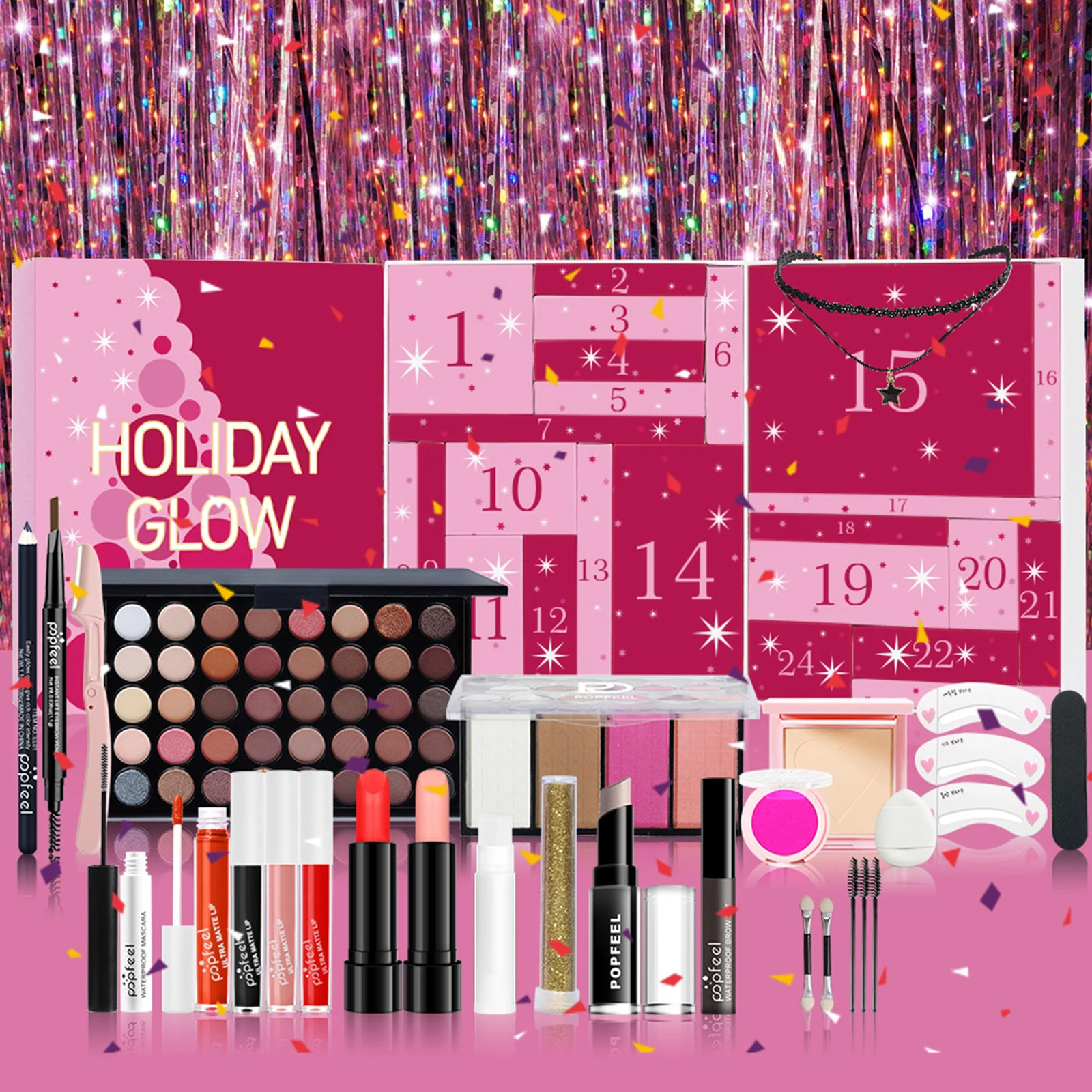 24-Days Makeup Box Countdown Calendar Eye Shadow Lipstick & Make-up Brush Beauty Advent Calendars For Women/Girls Surprise Gifts