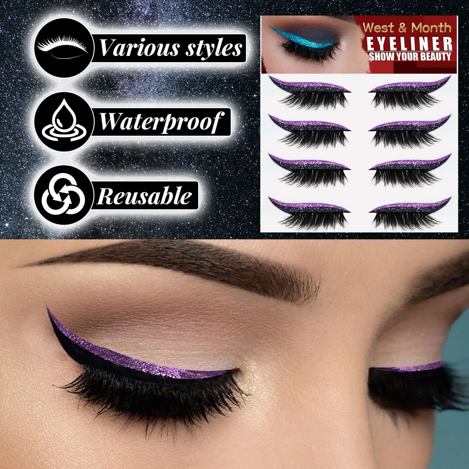 2in1 Eyeshadow Eyeliner Stickers False Eyelashes Waterproof Eyelash Liner Patches Instant Cat Eye Natural Look Party Eye Makeup