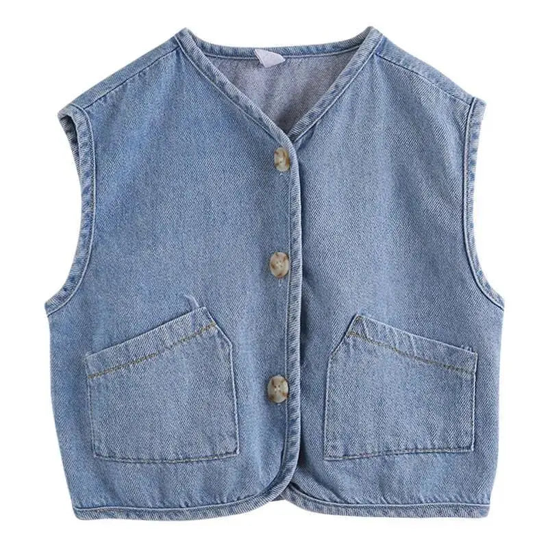 Children's Vest Spring and Autumn Season New Baby Versatile Shoulder Fashion Boys and Girls' Denim Vest Children Clothes