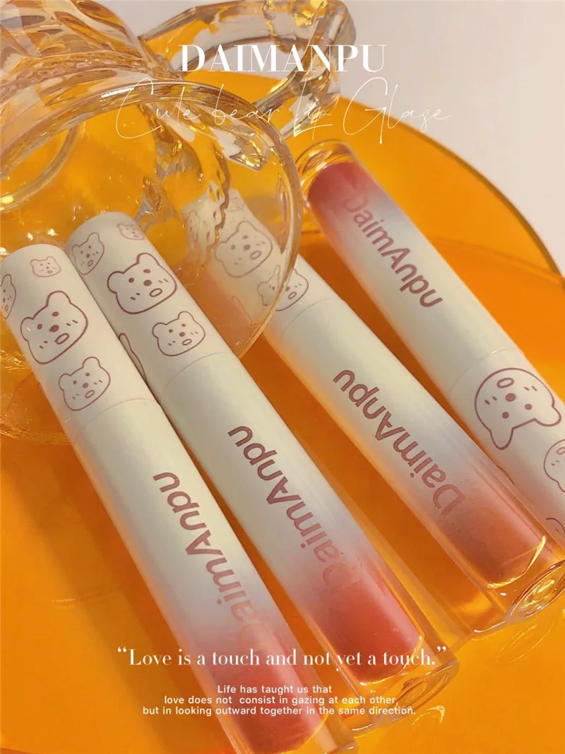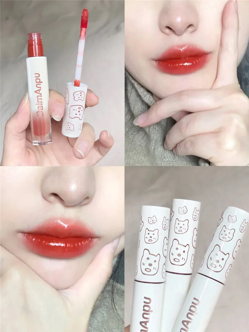 Cute Bear Liquid Lip Gloss Waterproof Non-stick Long Lasting Mirror Water Lip Glaze Lipstick Lip Gloss Beauty Cosmetic Makeup
