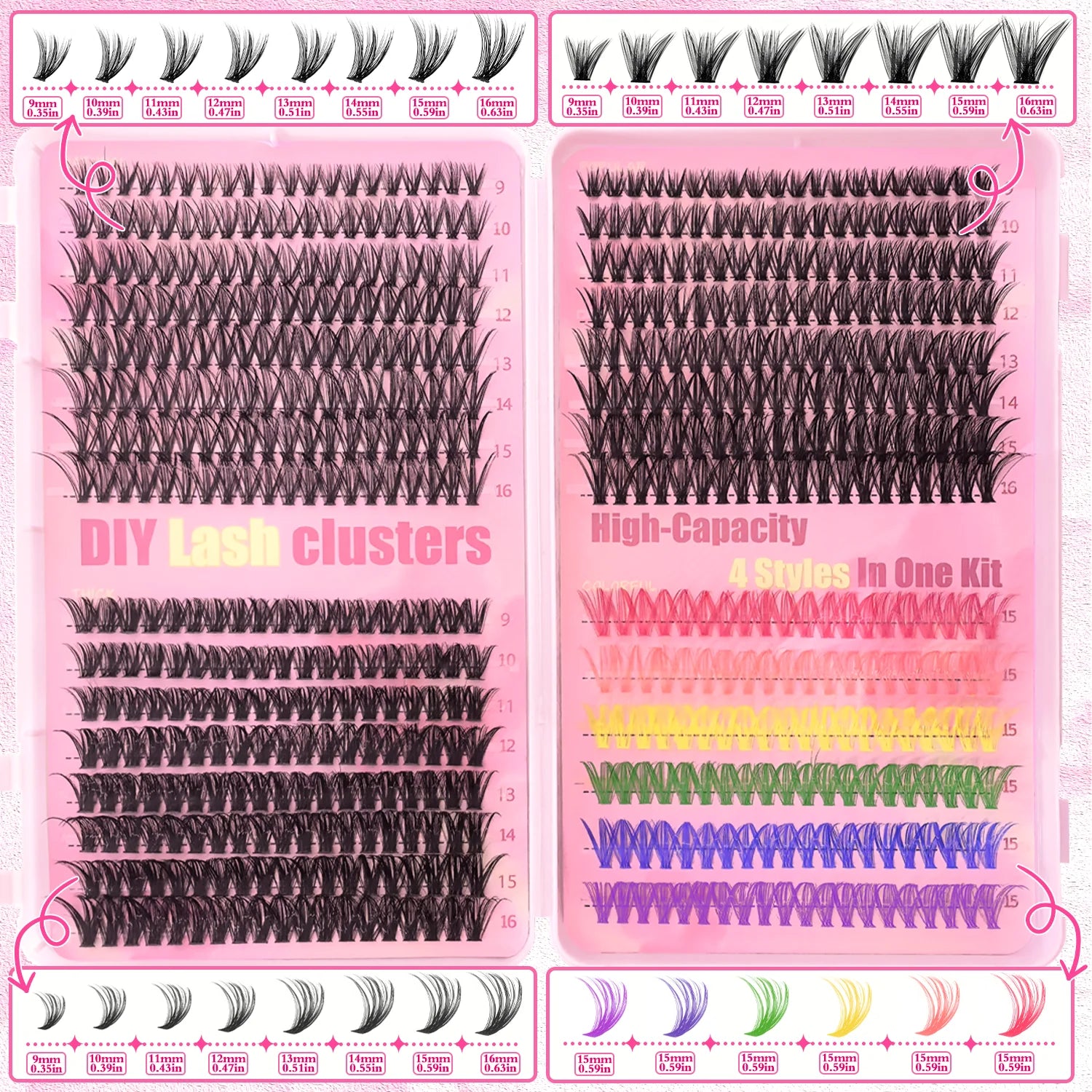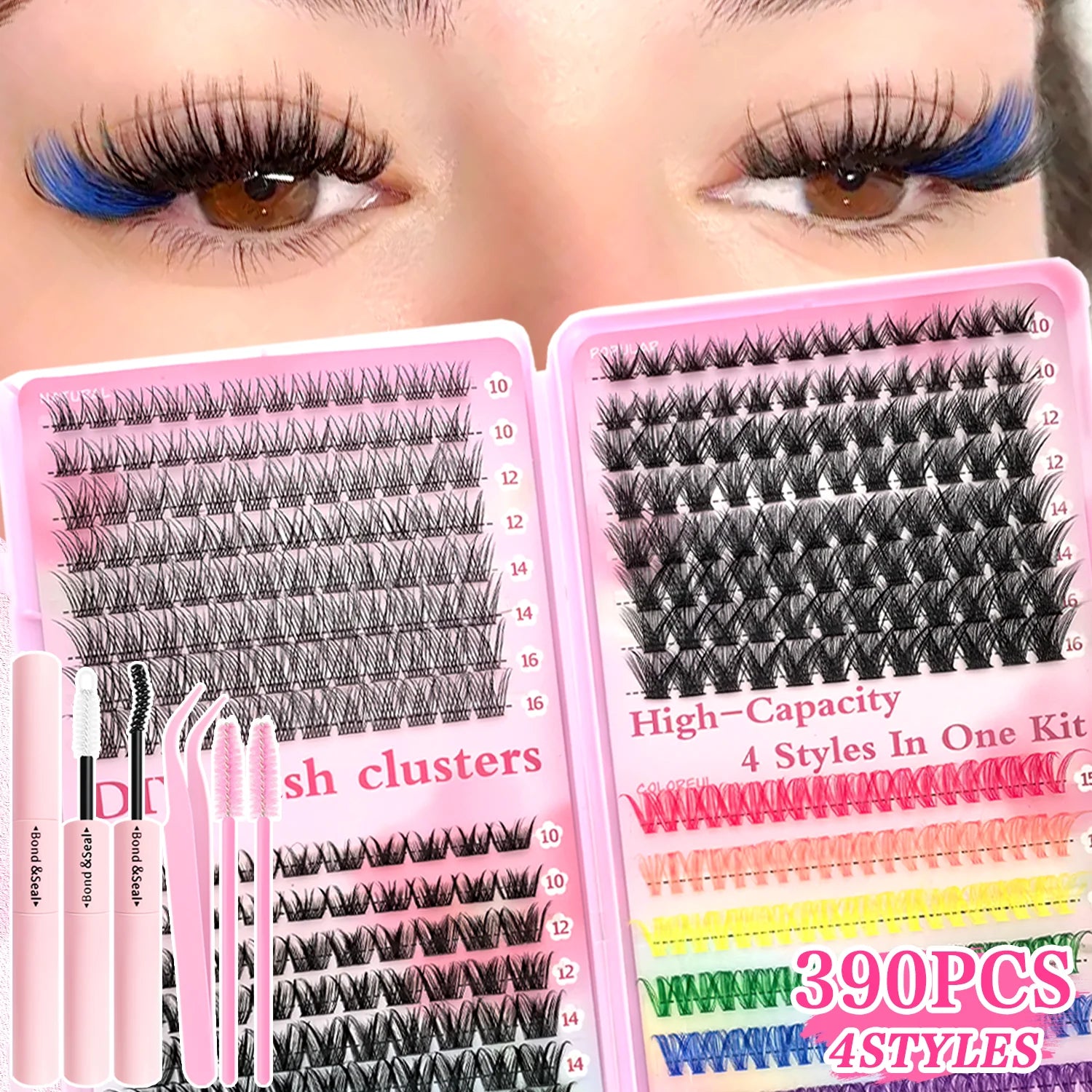 [Personal Eyelash] 240/390/600 Cluster Color Mixed Eyelash Extension Kit Makeup Beginner False Eyelash
