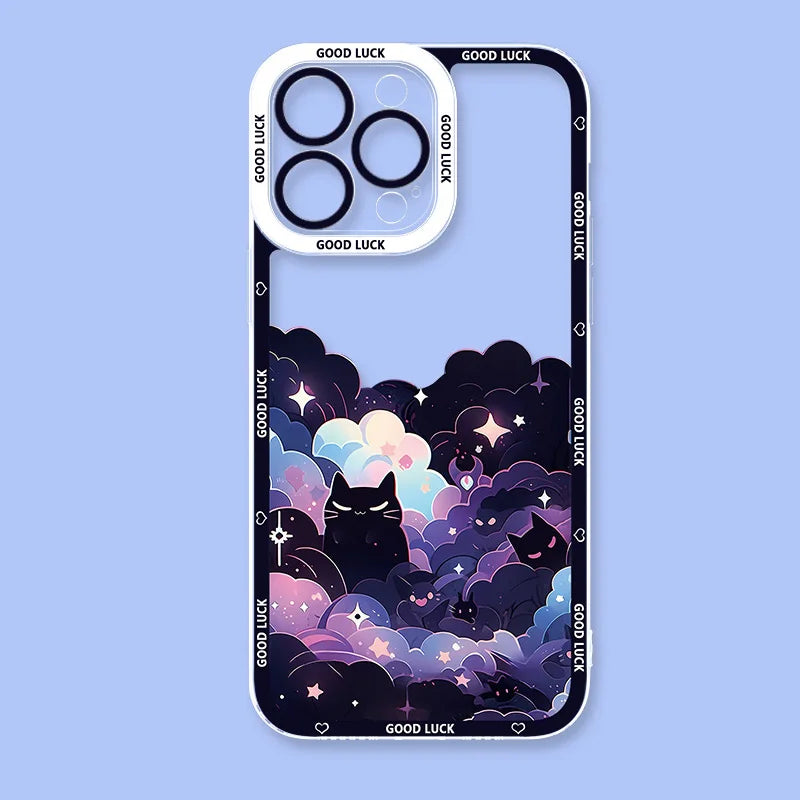 Starry Sky Black Cats Clear Phone Case For iPhone 15 14 13 11 12 16 Pro XS Max Mini XR X SE 7 8 Plus Transparent Cover Fundas