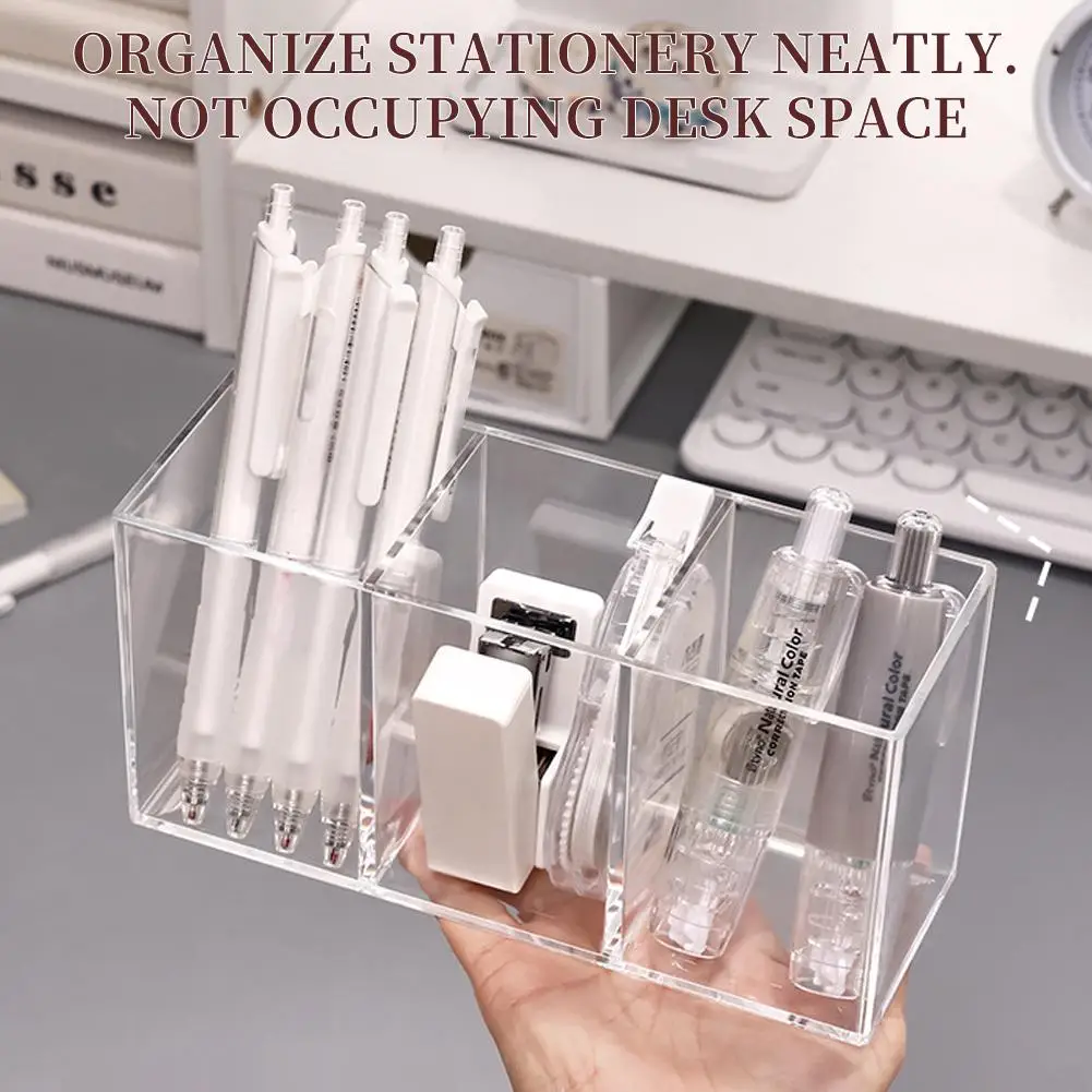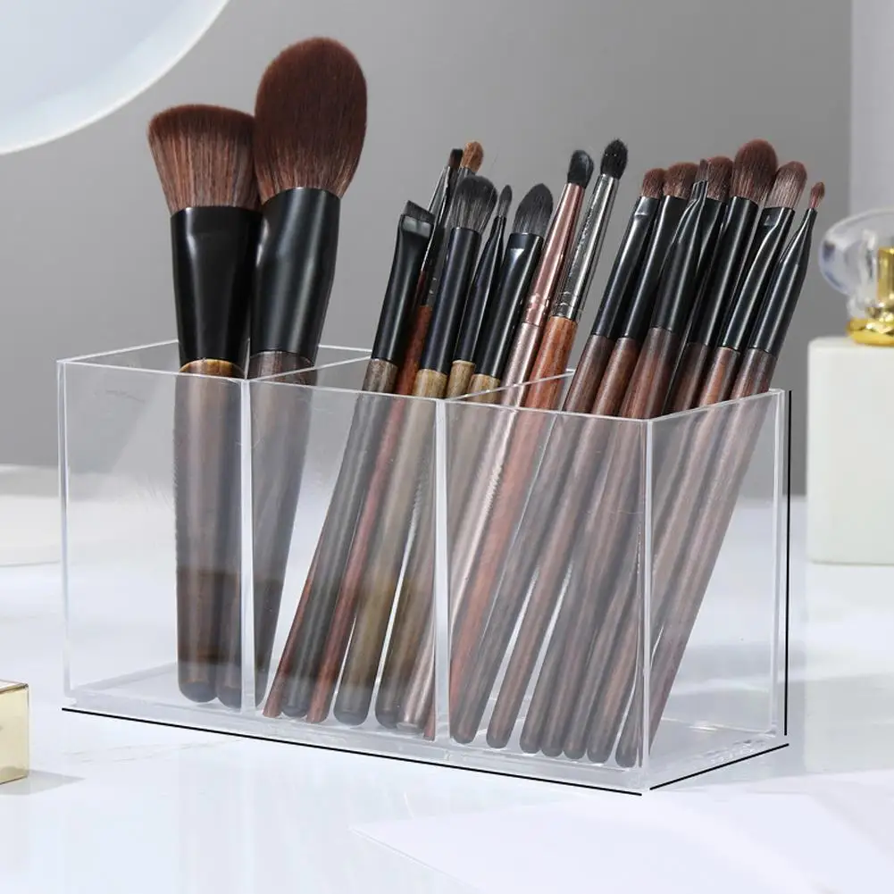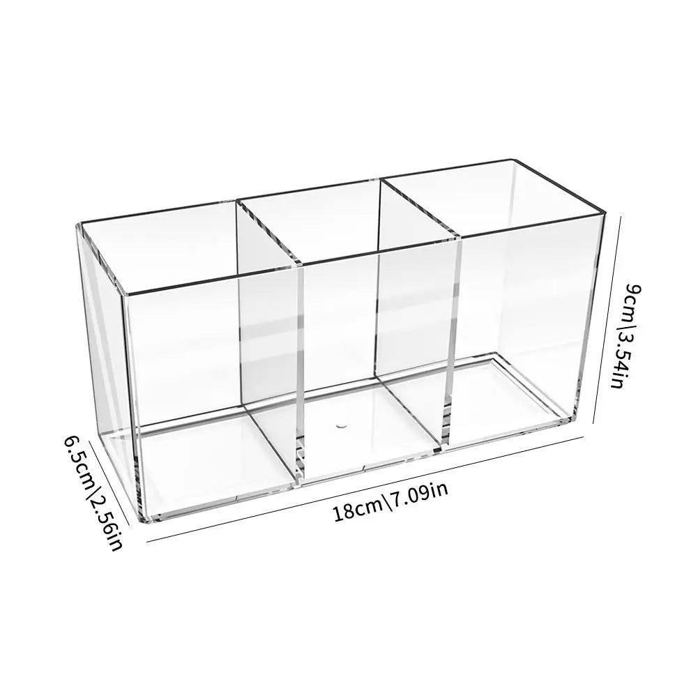 Transparent Acrylic Storage Box 3 Grid Makeup Box Desktop Organizer Makeup Brush Lipstick Rack Stationery Pen Storage Case