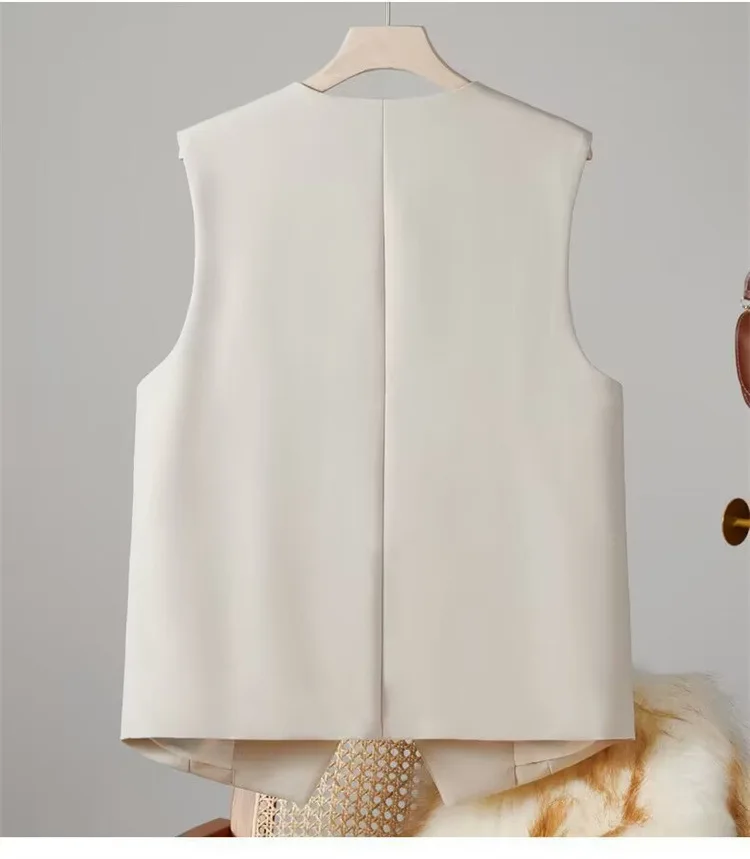 Vest Women Sleeveless Jacket Waistcoat V Neck Single Breasted Tops Outerwear Spring Summer Female 2025 Office Lady Vintage Coat