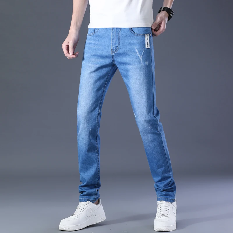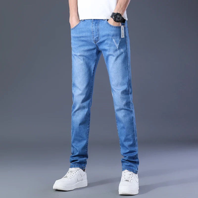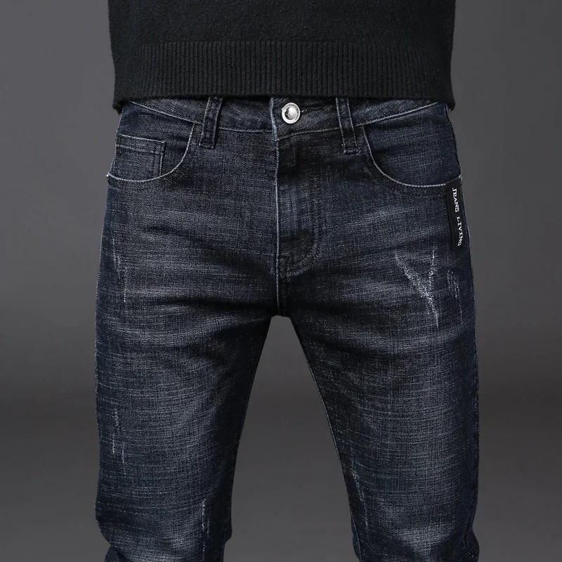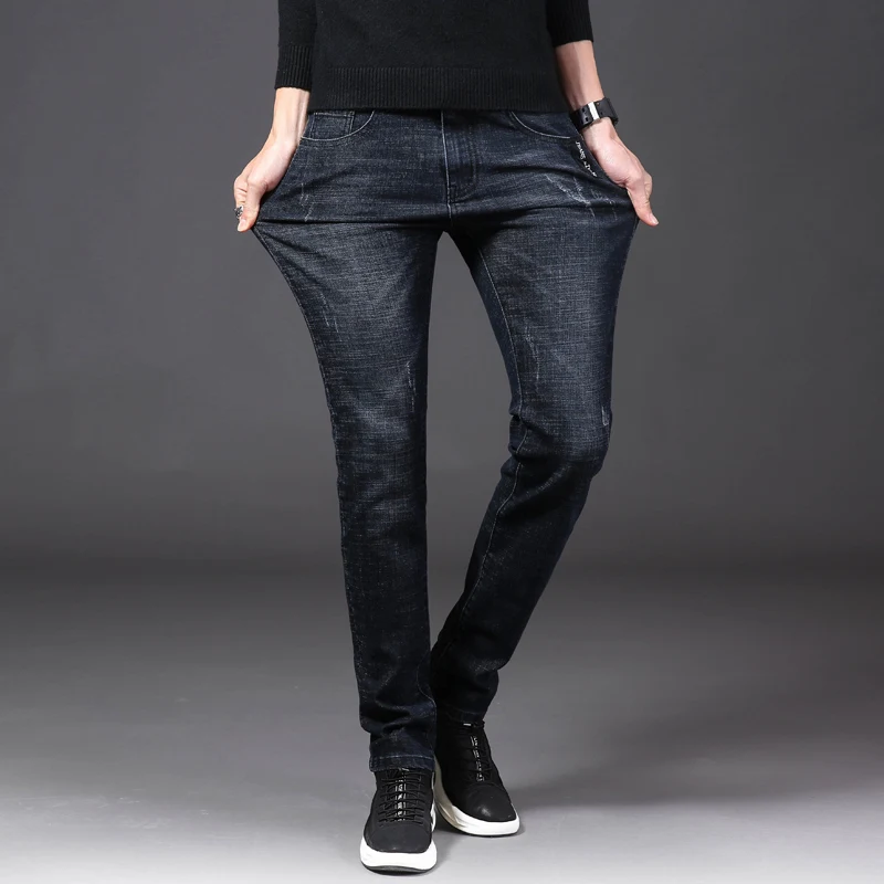 Winter Men Thermal Jeans Snow Warm Stretch Straight Jeans Man Fleece Denim Long Pants Narrow Leg Slim Fit Blue Black Trousers