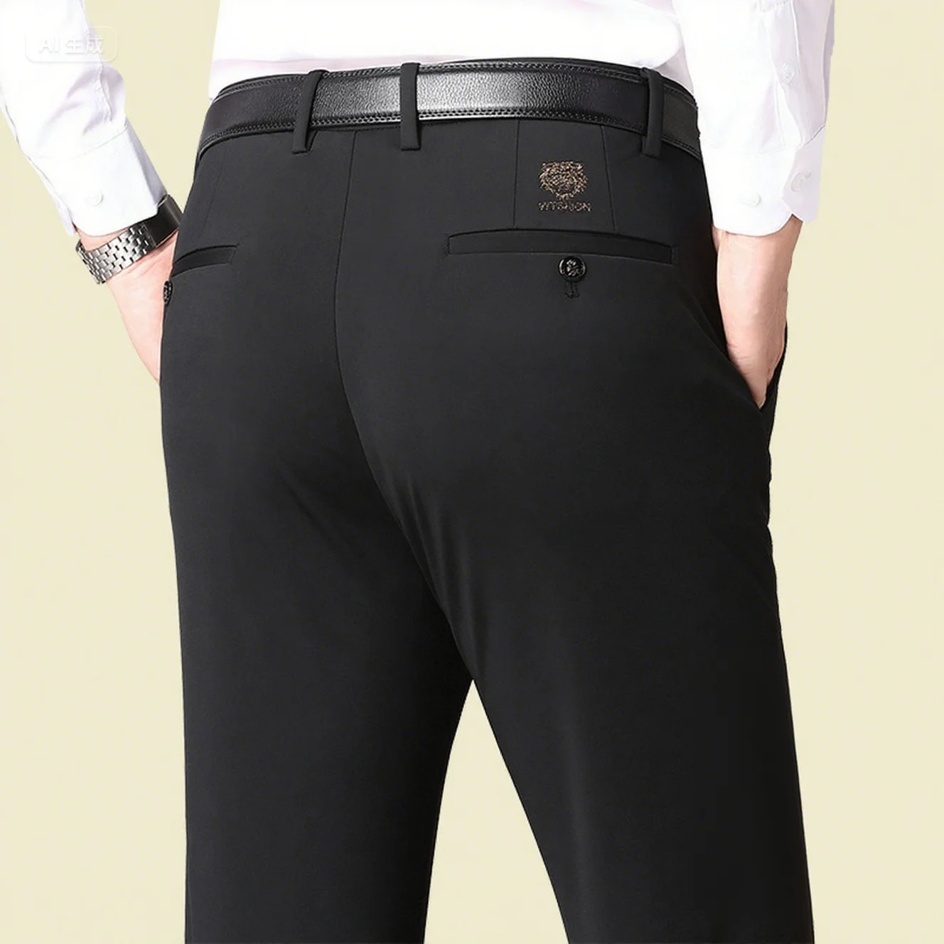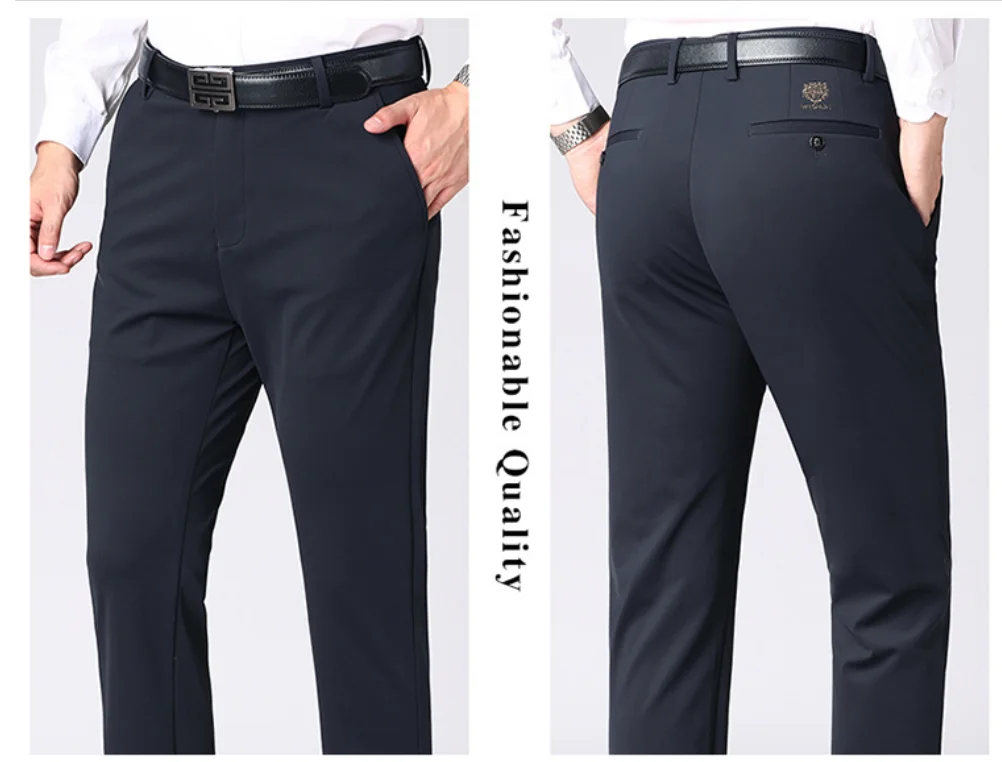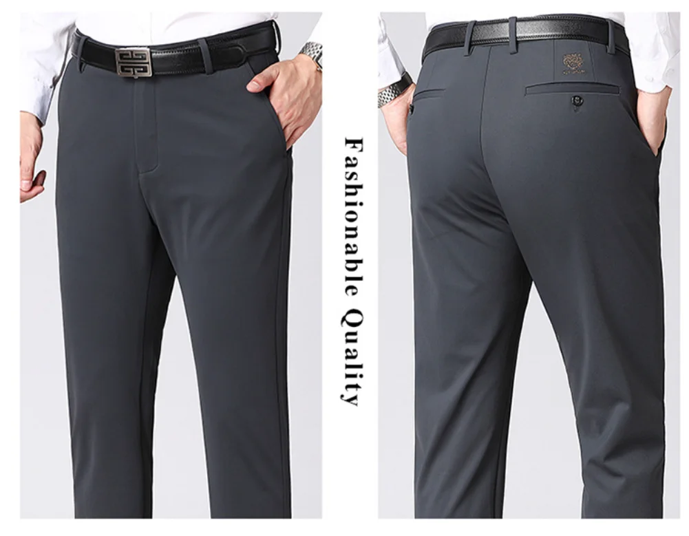 Winter Velvet Thickened Men's Business Casual Trousers Straight Leg Pants High Waisted Elastic Warm Men's Pants Slim Fit Pants