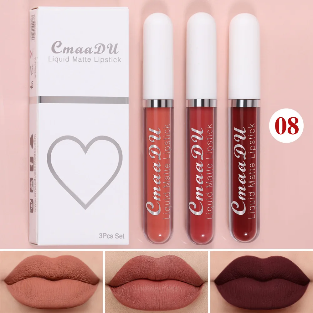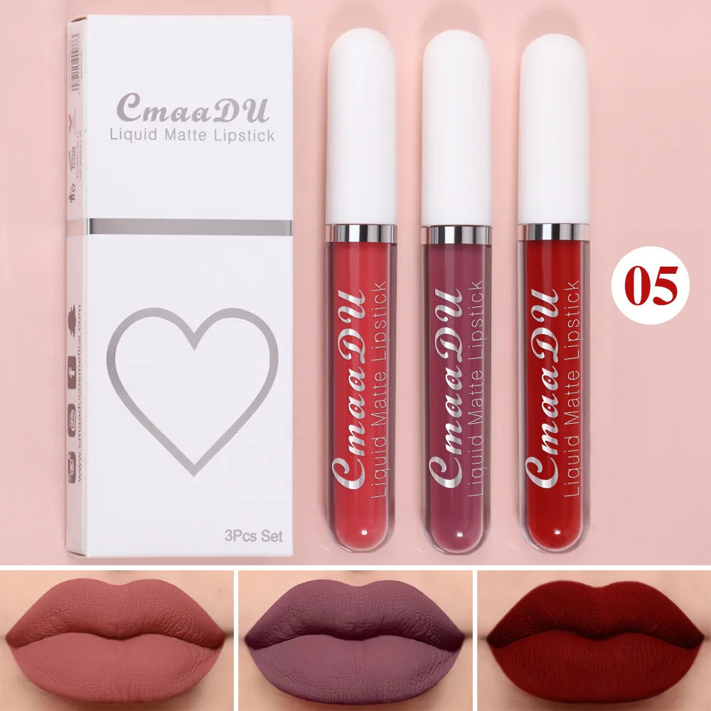 1/3pcs Matte Lipstick Set Liquid Waterproof Velvet Sexy Red Lip Gloss Kit Makeup Lasting Non-stick Cup Lip Tint Beauty Cosmetics