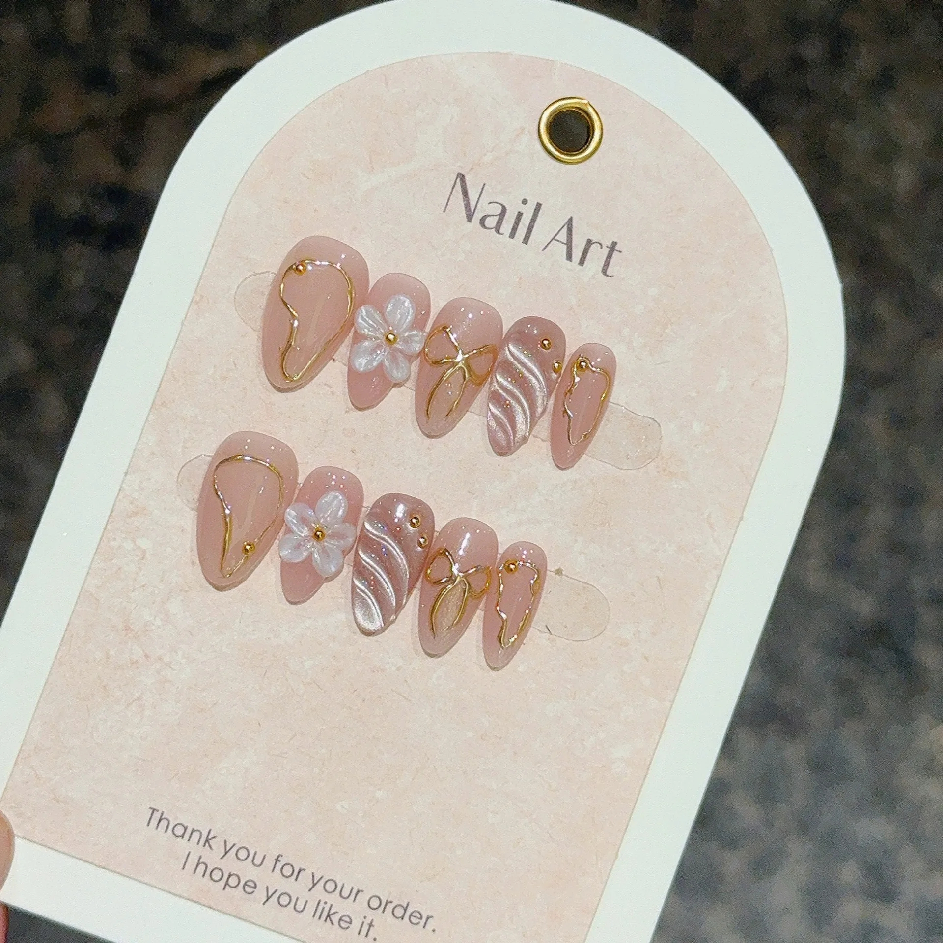 10Pcs Cat Eye Almond Handmade Press on Nails 3D Flower Fake Nails Wearable Stick-on Nails False Nail 네일팁 Накладные Ногти Uñas