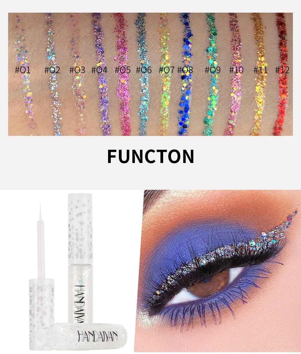 12 Color Liquid Glitter Eyeliner Pearl Shimmer Fashion Sequin Gel Waterproof Lasting Quick Dry Blue Silver Eyeliner Party Makeup