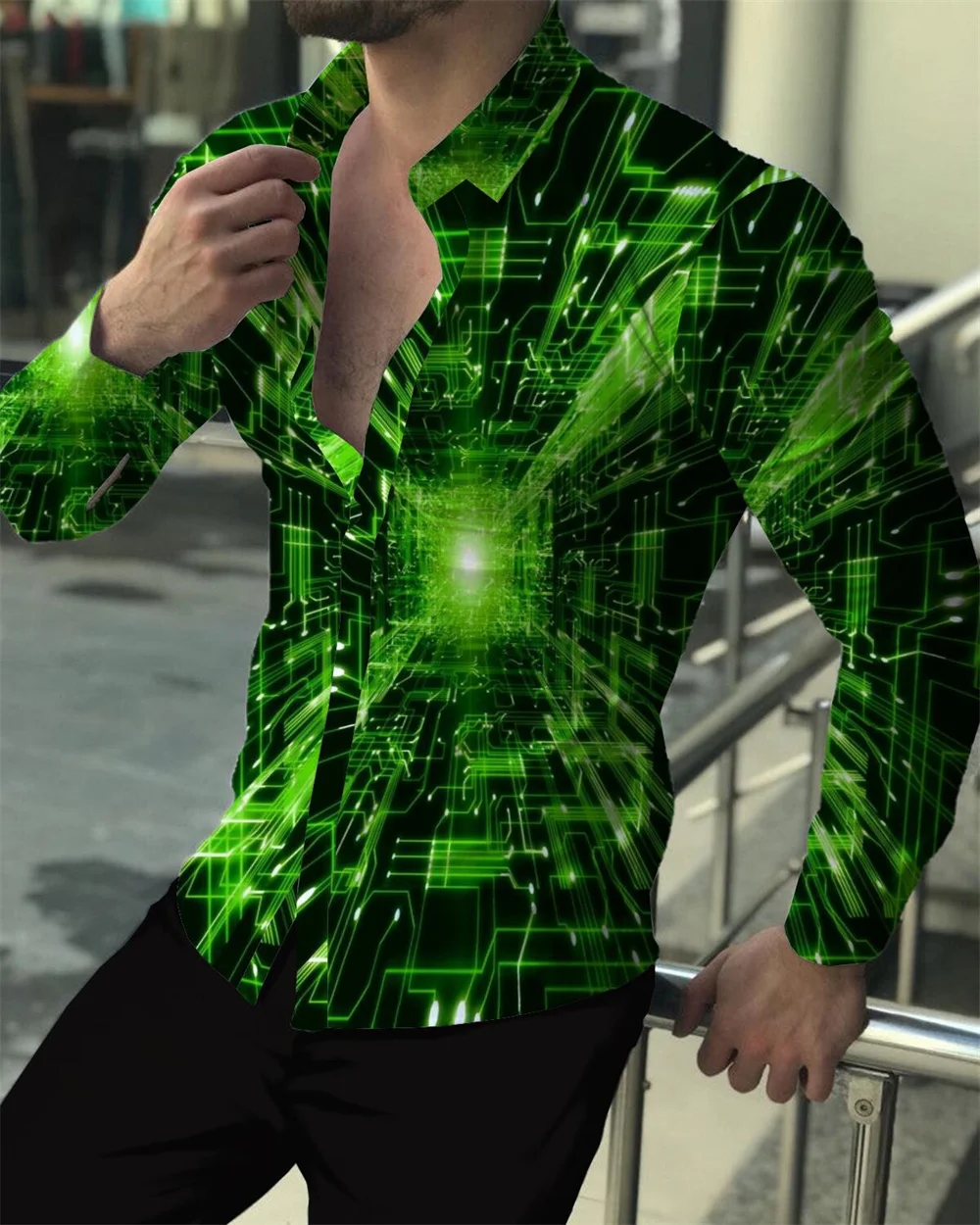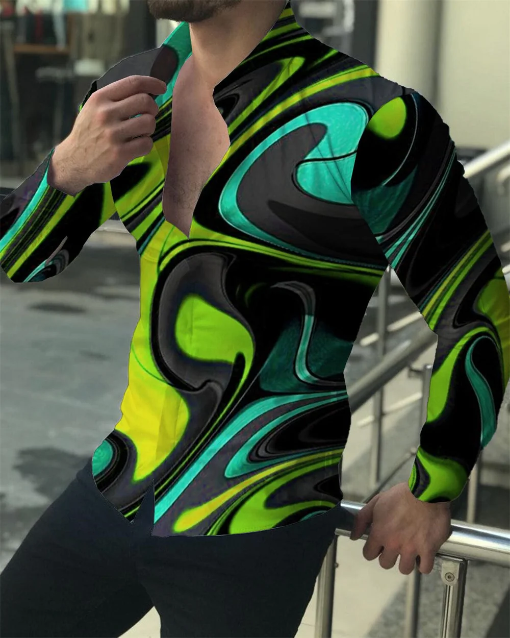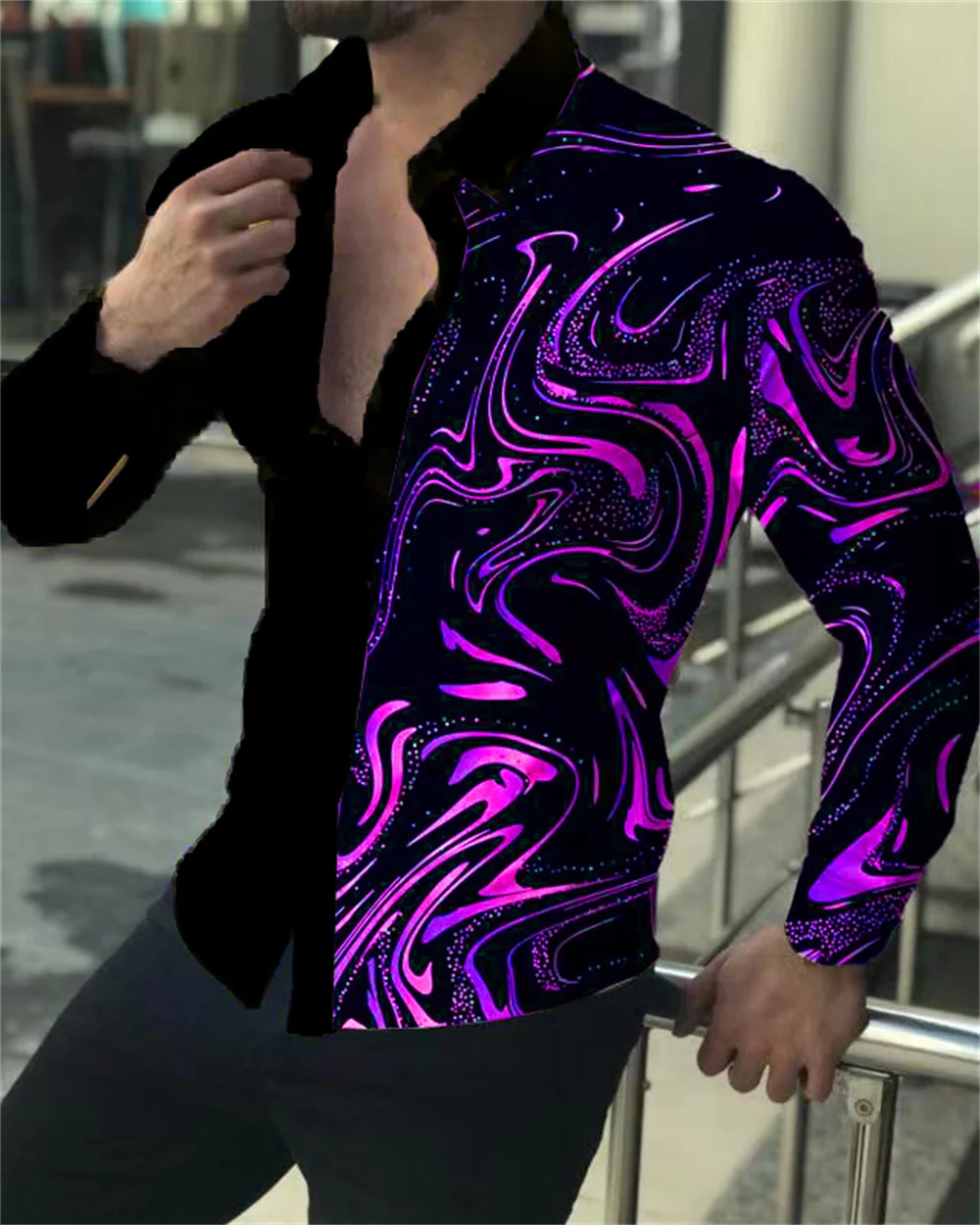 2023 latest men's prom fashion luxury social men's lapel single breasted cardigan shirt casual printing long-sleeved shirt