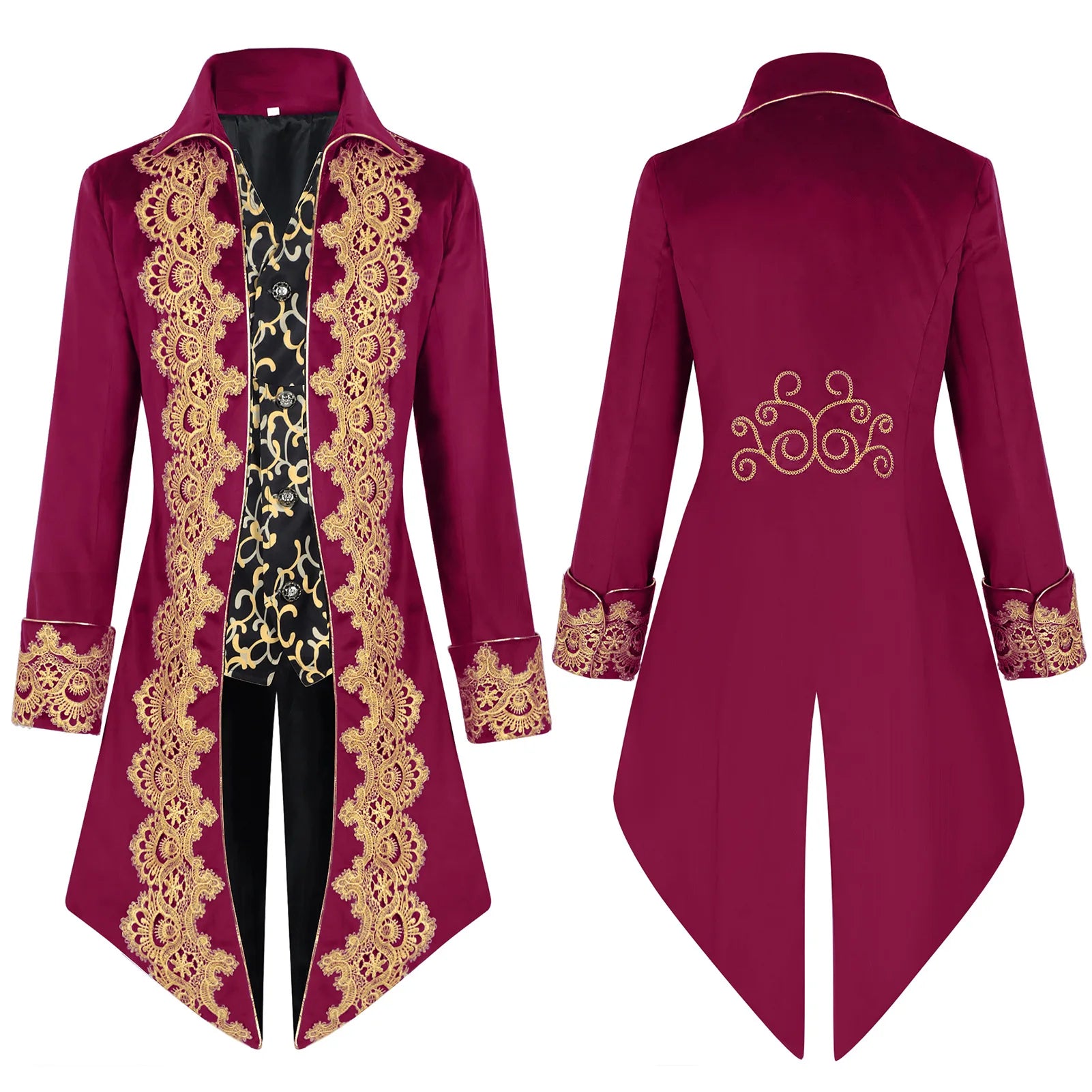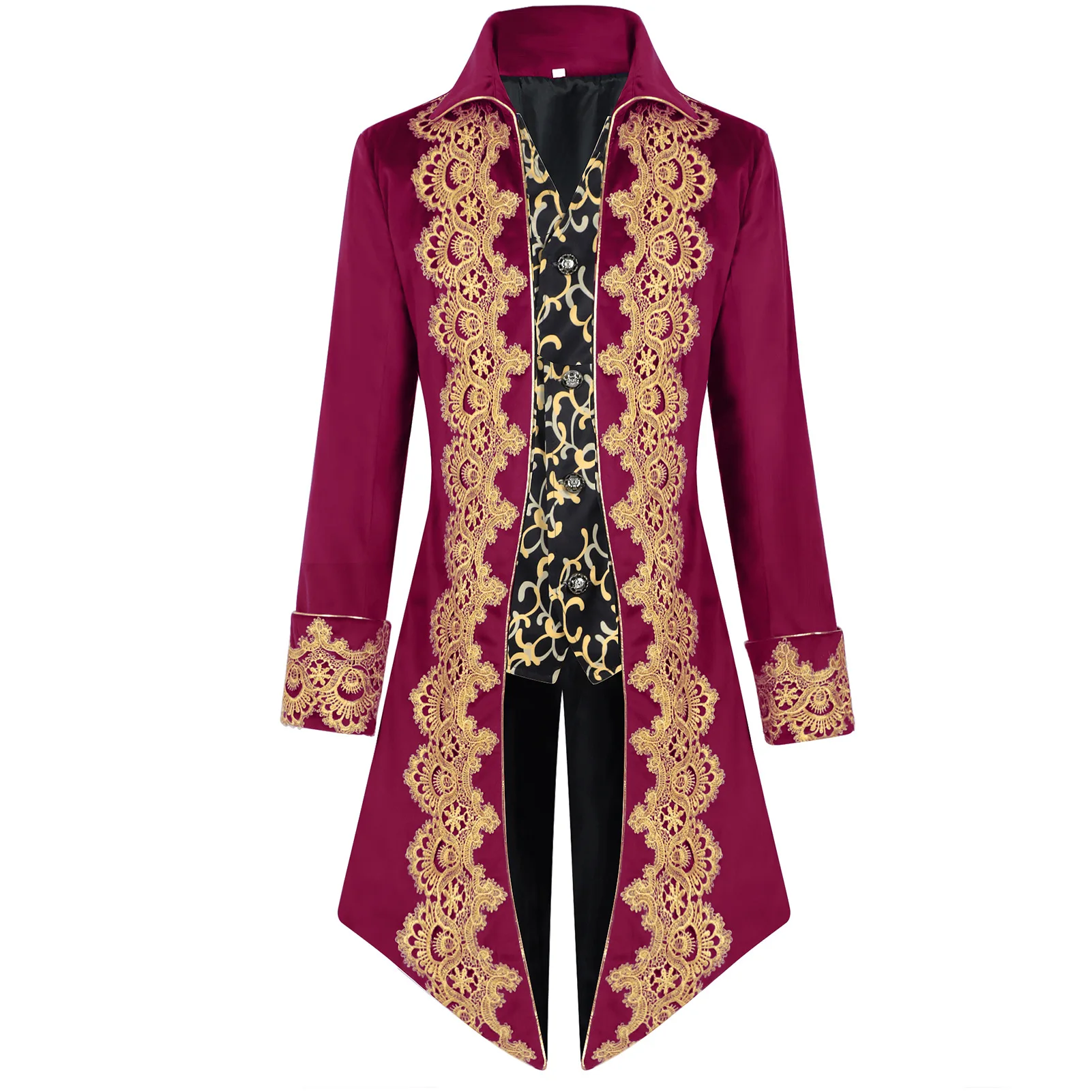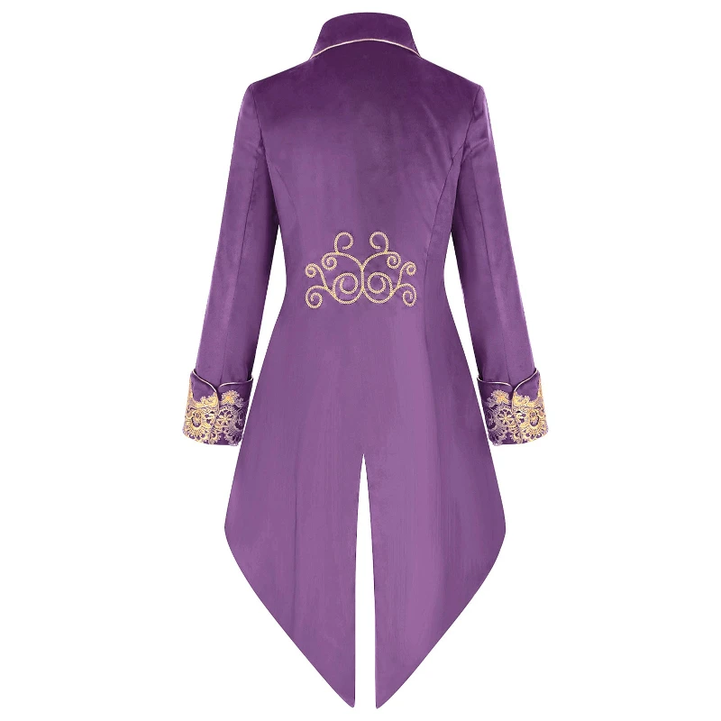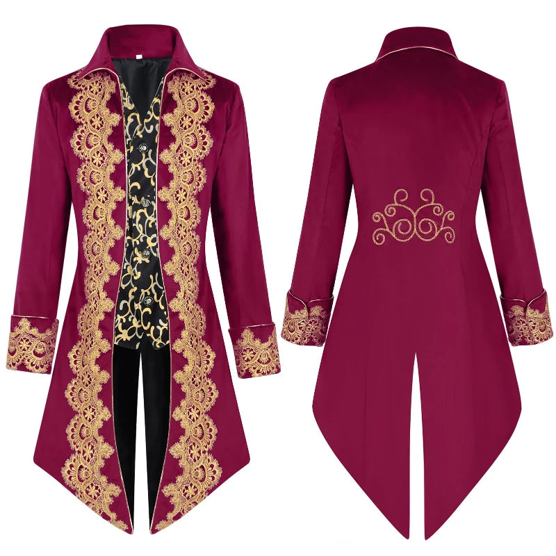 2025 New Blue Lace Tuxedo for Men, Euro- American Medieval Vintage Men's Tailcoat Jacket,medium Length Punk Performance Costume