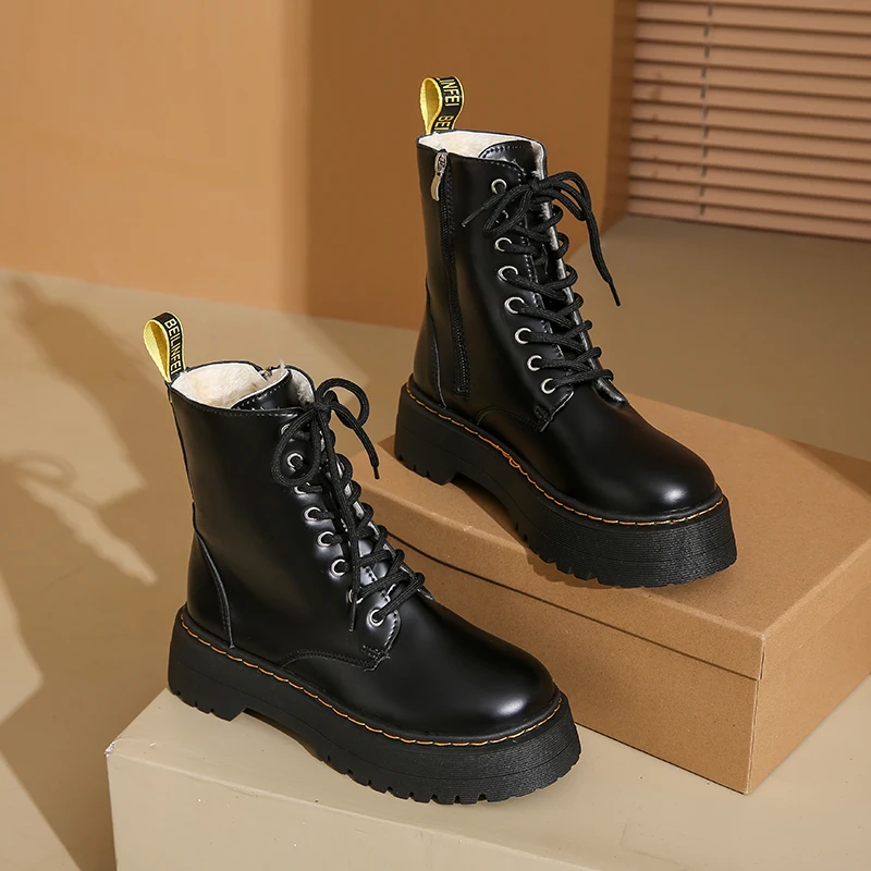 2025 New Women Boots Goth Casual Shoes Woman Leather Chelsea Classic Female Goth Shoes High Platform Boots Women Boots