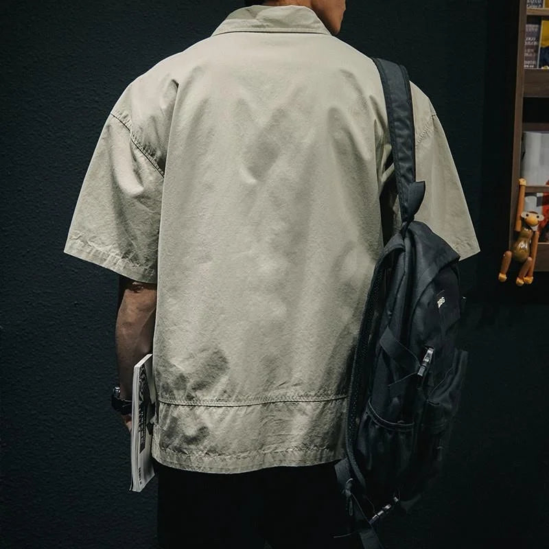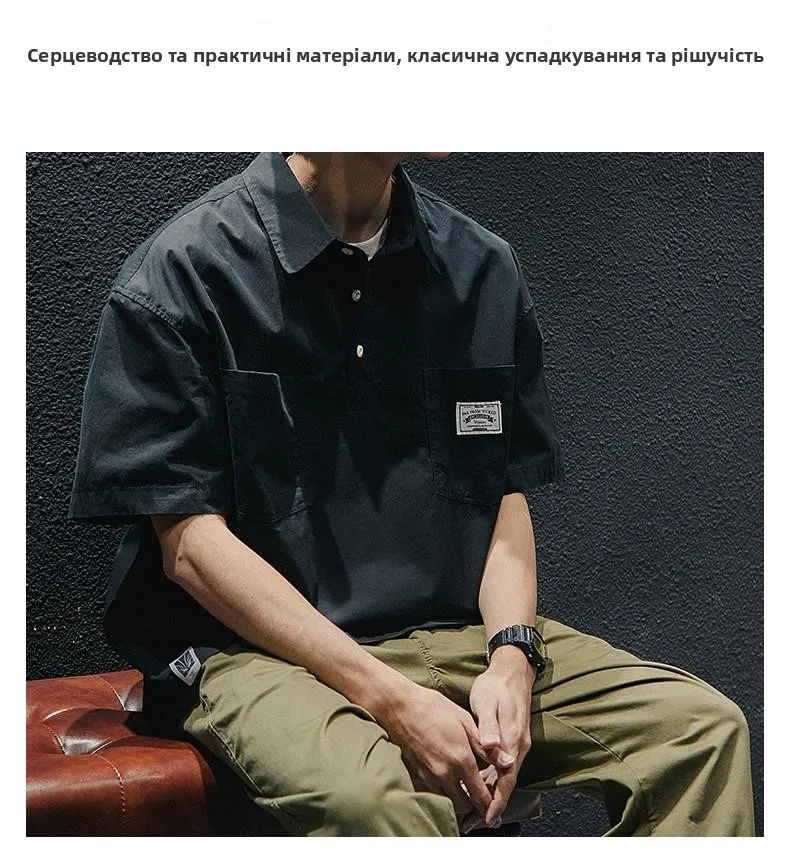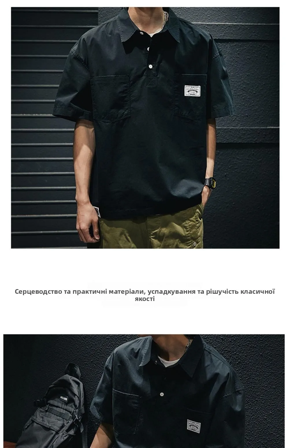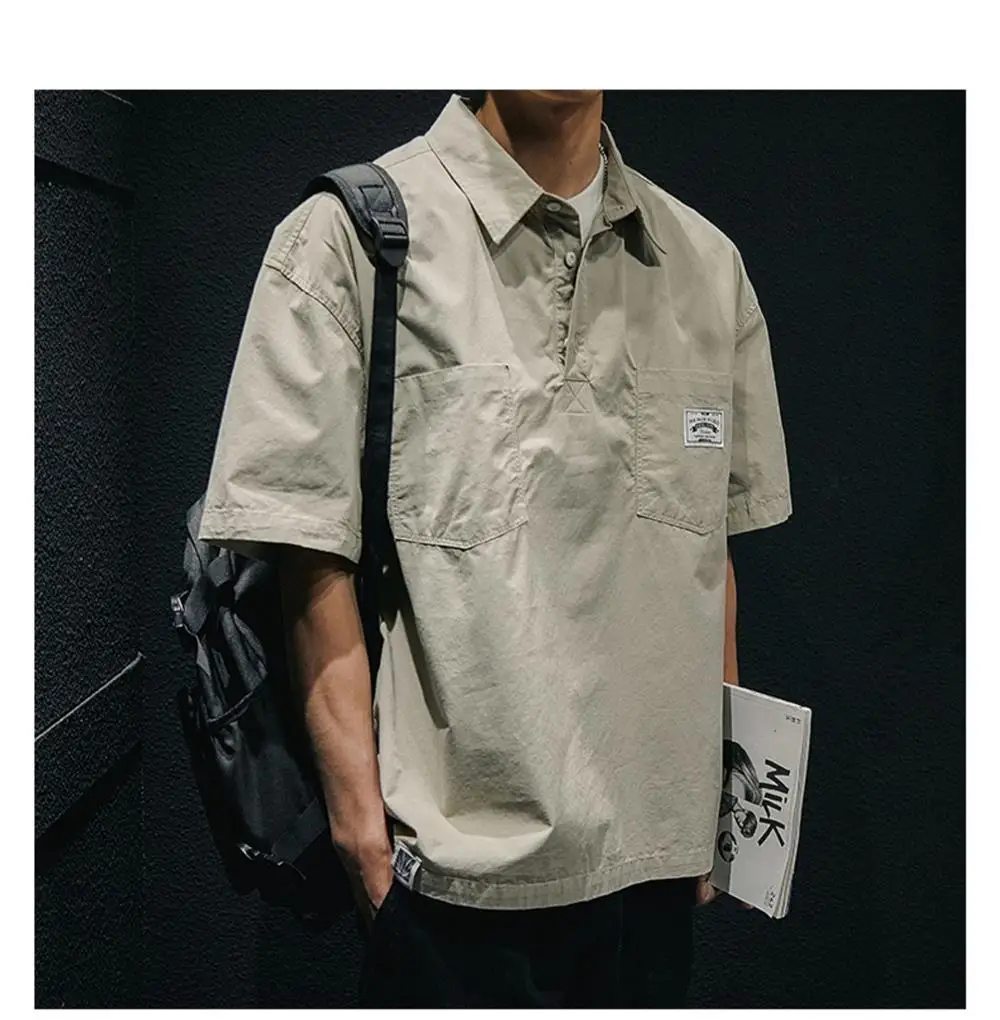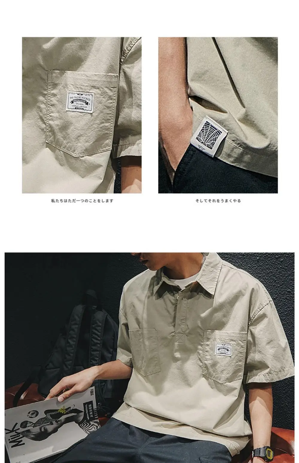 American Retro Men's irt Summer Loose Workwear ort Sve T-irt Simple Sle Youth Trend ket Design Flat Iron