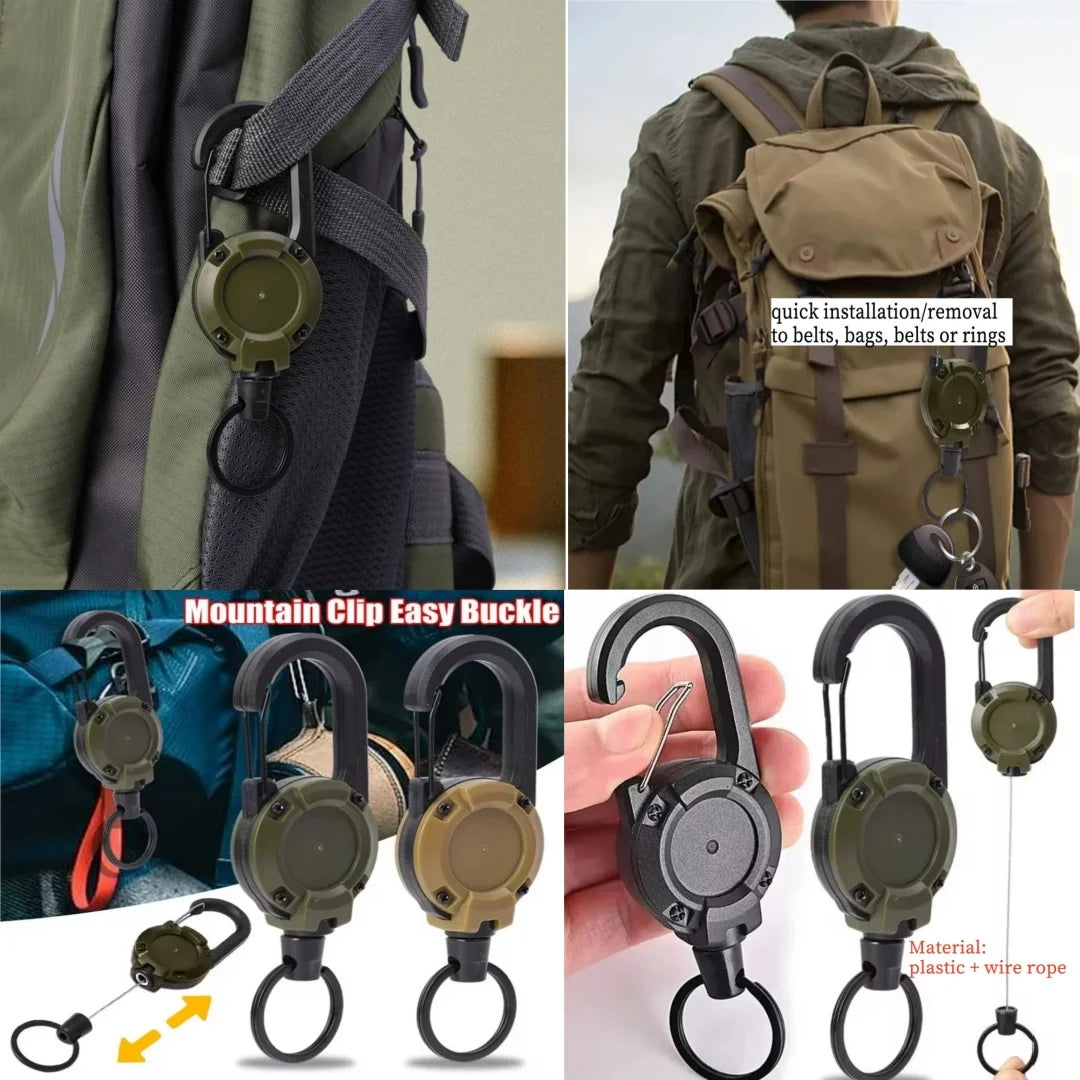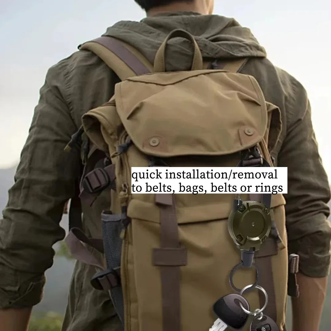 Gear mechanism automatically winds the cable - strong enough to pull dozens of keys or gadgets