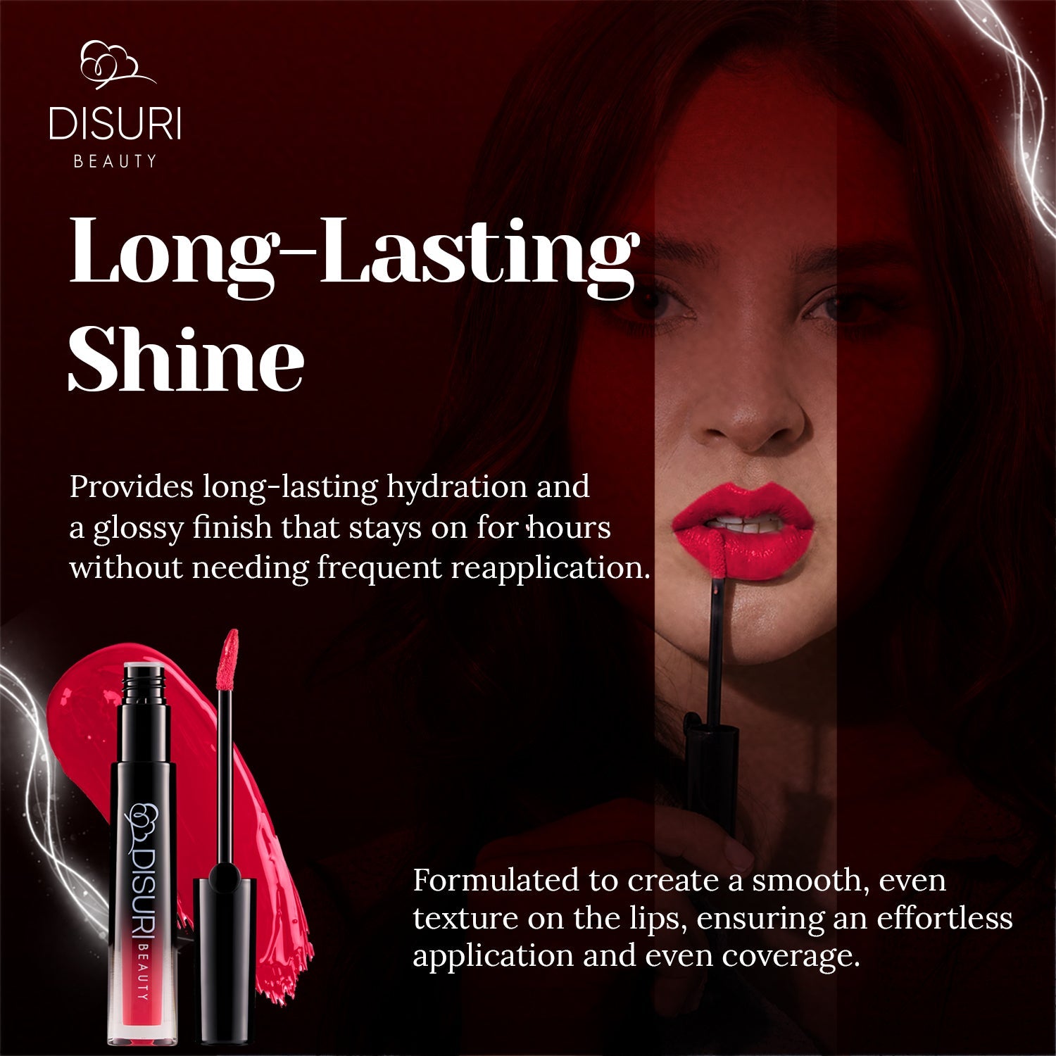 - Keeps lips smooth and hydrated with a glossy finish.