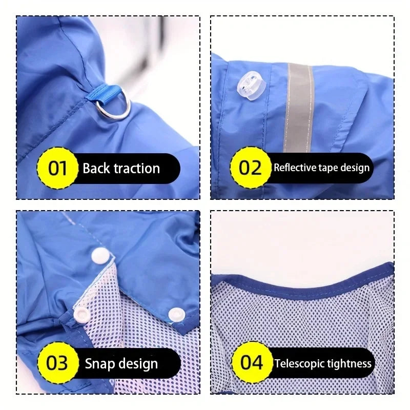 Dog Raincoat Puppy Clothes, Pet Raincoat Hooded Raincoat With D-ring For Dogs Outdoor Supplies