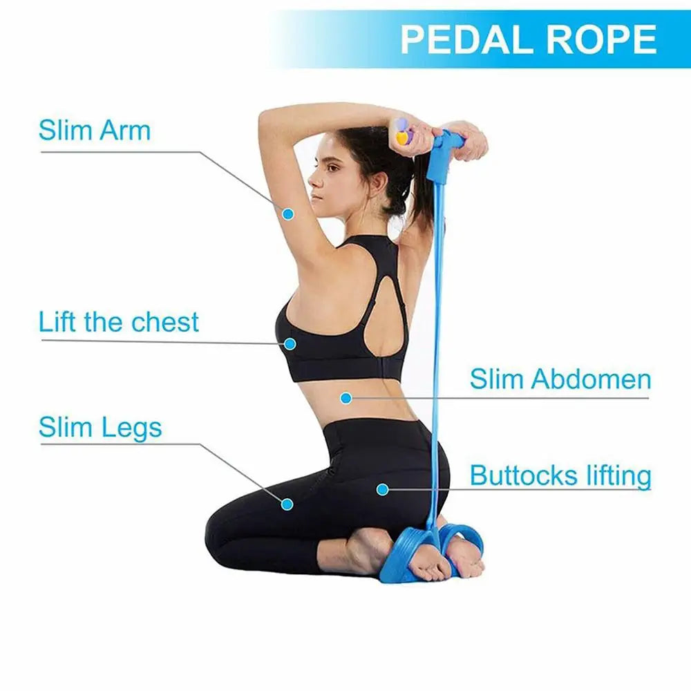 Fitness Resistance Bands-4 Tube Pedal Ankle Puller - Sit Up Leg Stretch Rope Exercise Bands , Stretching Workout Fitness Bands