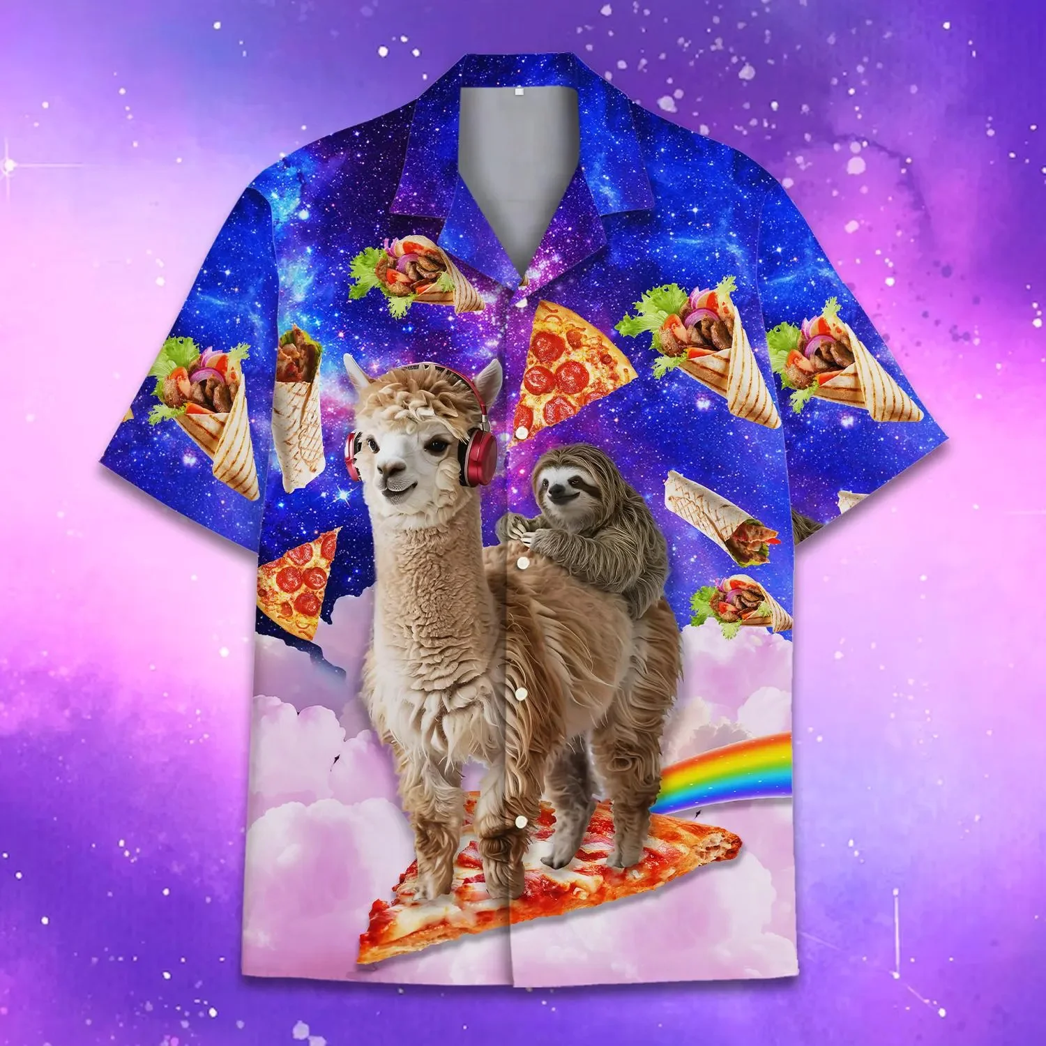 Funny Animal Pizza Hawaiian Shirts Men Women Youth Music Raccoon Shirt Button Down Space Party Shirt 2025 Vacation Aloha Shirt