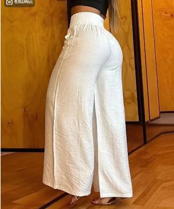 Wide Leg Pants Women Capris Loose Flare Pant Pockets Solid Basics Casual Spliced High Waist Trousers Streetwear Summer 2025