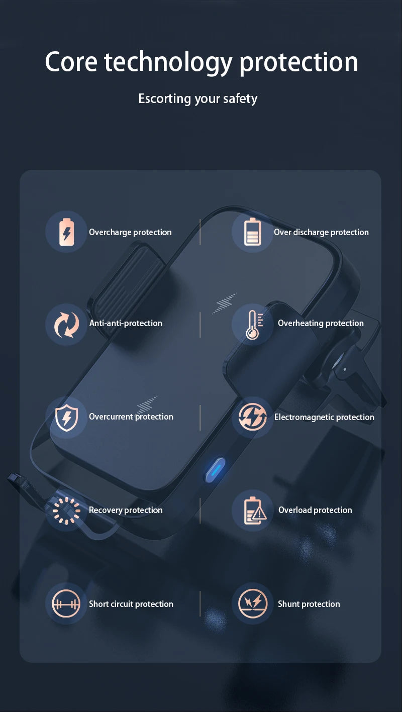 5. The most convenient car phone holder mount support 15W fast wireless charging, never worry about your phone off from low battery.