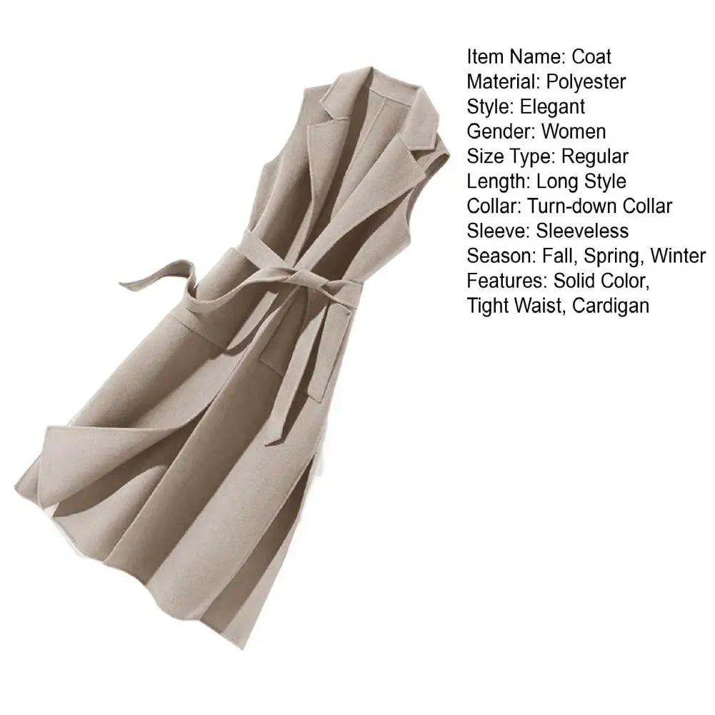 Women Vest Turn-down Collar Sleeveless Cardigan Open Stitch Tight Waist Keep Warm Belt Loose Thick Lady Winter Waistcoat for Dating
