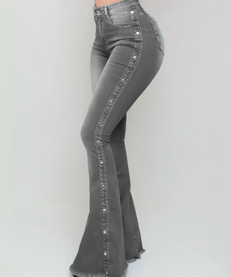 Women Denim Pant Jeans High Waist Strecth Denim Flare Pants Vintage Trousers Buttons Streetwear 2025 Autumn Female Floor Length