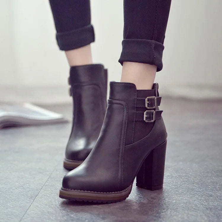 Women Shoes 2022 Autumn Size 43 Retro Black Pumps Belt Buckle Short Boots Fashion Heeled Ankle Boots Women Zipper Zapatos Mujer