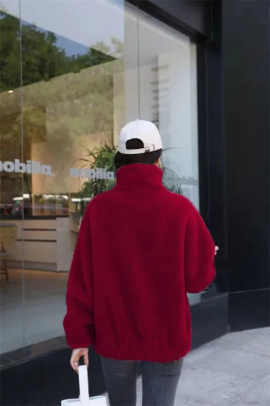 Women Thick Coats Zipper Turtleneck Spliced Long Sleeve Coat Warm Solid Zipper Jackets Outwear Casual Cardigan Lady Winter 2024