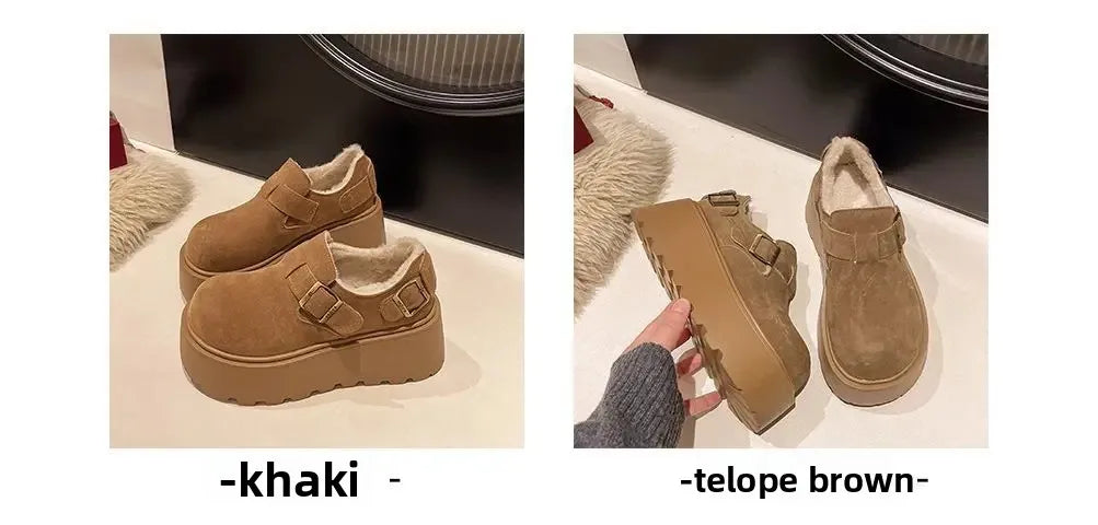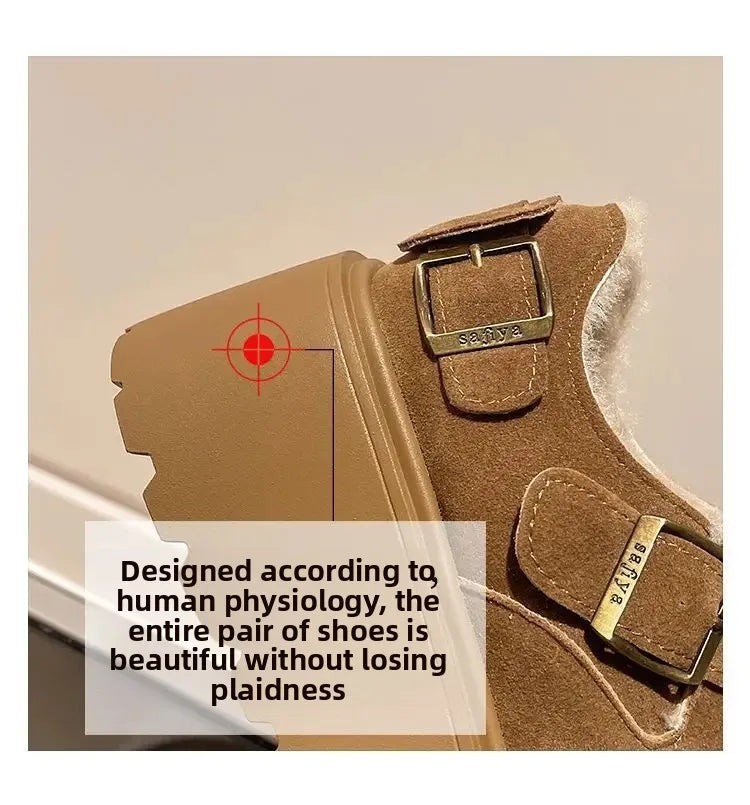 Women's Thick Bottomed Slip-On Flats Fleece Lined Cotton Shoes Spring Autumn Casual Comfortable Flat Heel Warmth Enhancing