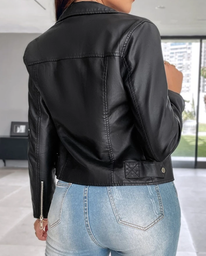 Women's Trendy Black Short Leather Coats Autumn 2024 New American Retro Pu Leather Motorcycle Jacket Zipper Short Leather Coats